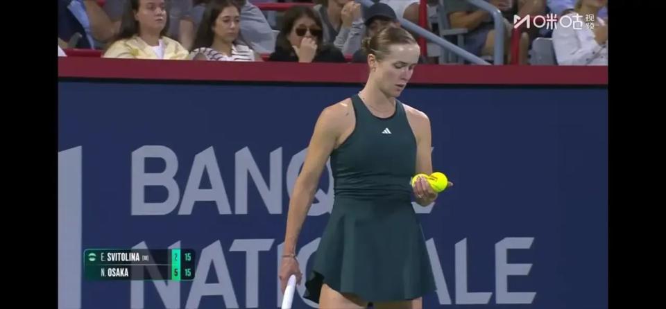 斯维托丽娜顽强化解对手发球胜盘局,回到己方发球局再次失守,不得不接受0-2先丢一盘结果。